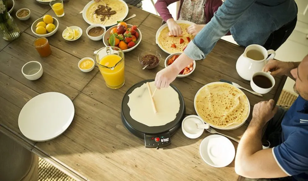 У процесі приготування немає диму, гару і неприємних запахів, за короткий час можна напекти багато смачних, ідеально рівних млинчиків однакового розміру. Також хороша млинниця знижує ризик пригорання млинця і скорочує кількість необхідного масла. Більше ніяких пригорілих країв і першого млинця грудкою! З правильною млинницею навіть новачок зможе приготувати смачні млинці з першого разу.