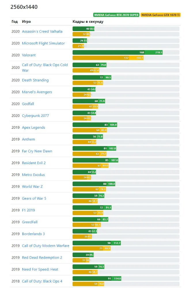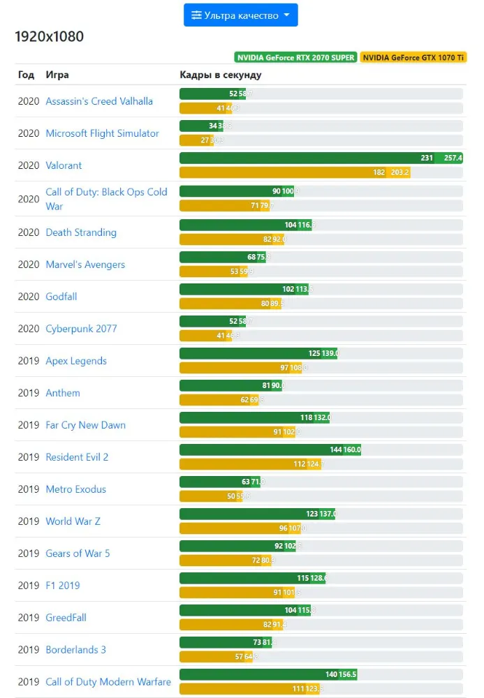 Наприклад, без включеного трасування RTX 2070 Super всього на 15-20% продуктивніше GTX 1070 Ti при тестуванні у розширенні Full HD (1920×1080):